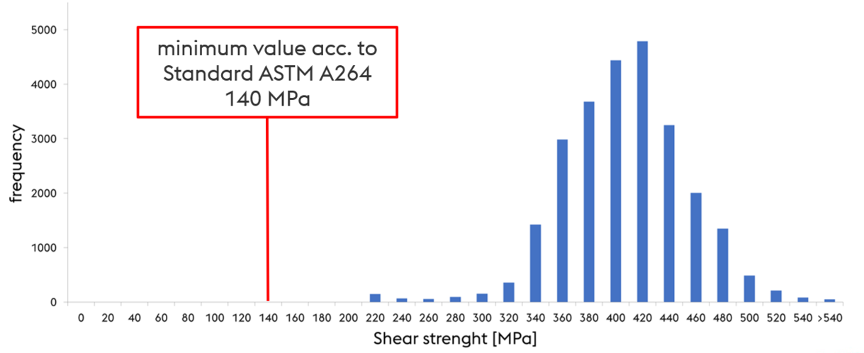 Das Ergebnis: eine herausragende Abscherfestigkeit, die den geforderten Normwert deutlich übertrifft. In der Praxis entspricht sie etwa der Streckgrenze des jeweils schwächeren Materials – ein Beweis für die außergewöhnliche Bindequalität und somit der Zuverlässigkeit unserer Produkte.