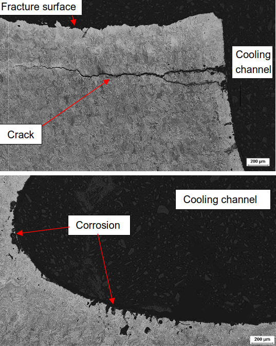 Unsere Unterstützung endet nicht mit der Lieferung von additiv gefertigten Einsätzen. Er geht weit darüber hinaus. Jedes Werkzeug hat eine bestimmte Lebensdauer und versagt irgendwann. Wir analysieren und untersuchen Ihre ausgefallenen Werkzeugeinsätze, um die Schadensursache zu ermitteln. Ein Riss zum Beispiel kann viele verschiedene Ursachen haben. Nur wer die Ursache kennt, kann die notwendigen Maßnahmen ergreifen, um die Standzeit zu verlängern und das Problem zu lösen.