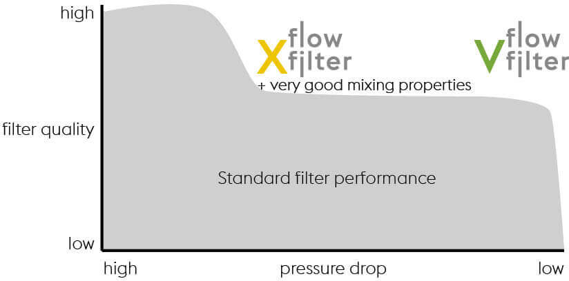 The unique material flow design of the flow filter results in a significant reduction in pressure drop typically associated with traditional injection molding nozzle filters, giving additional benefits such as reduce machines wear and energy consumption.