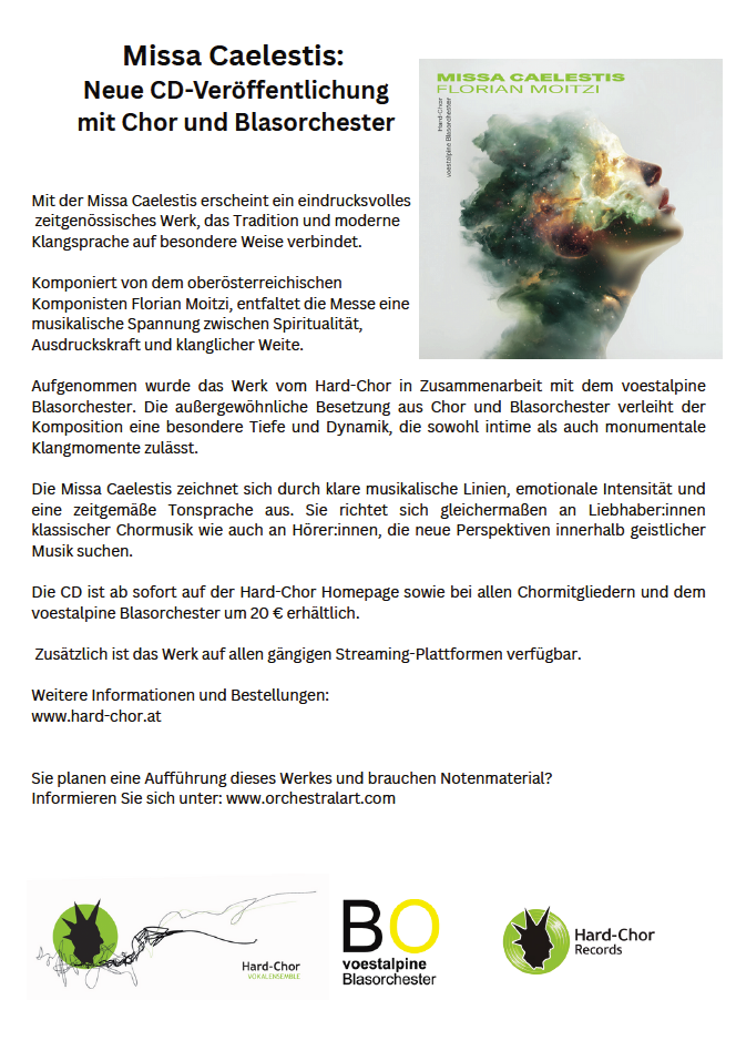 Nach einer fulminanten Uraufführung der „Missa Caelestis“ („Himmlische Messe“) in der Friedenskirche Linz folgte der Auftakt zum Folgeprojekt: die Einspielung des Werks auf Tonträger.