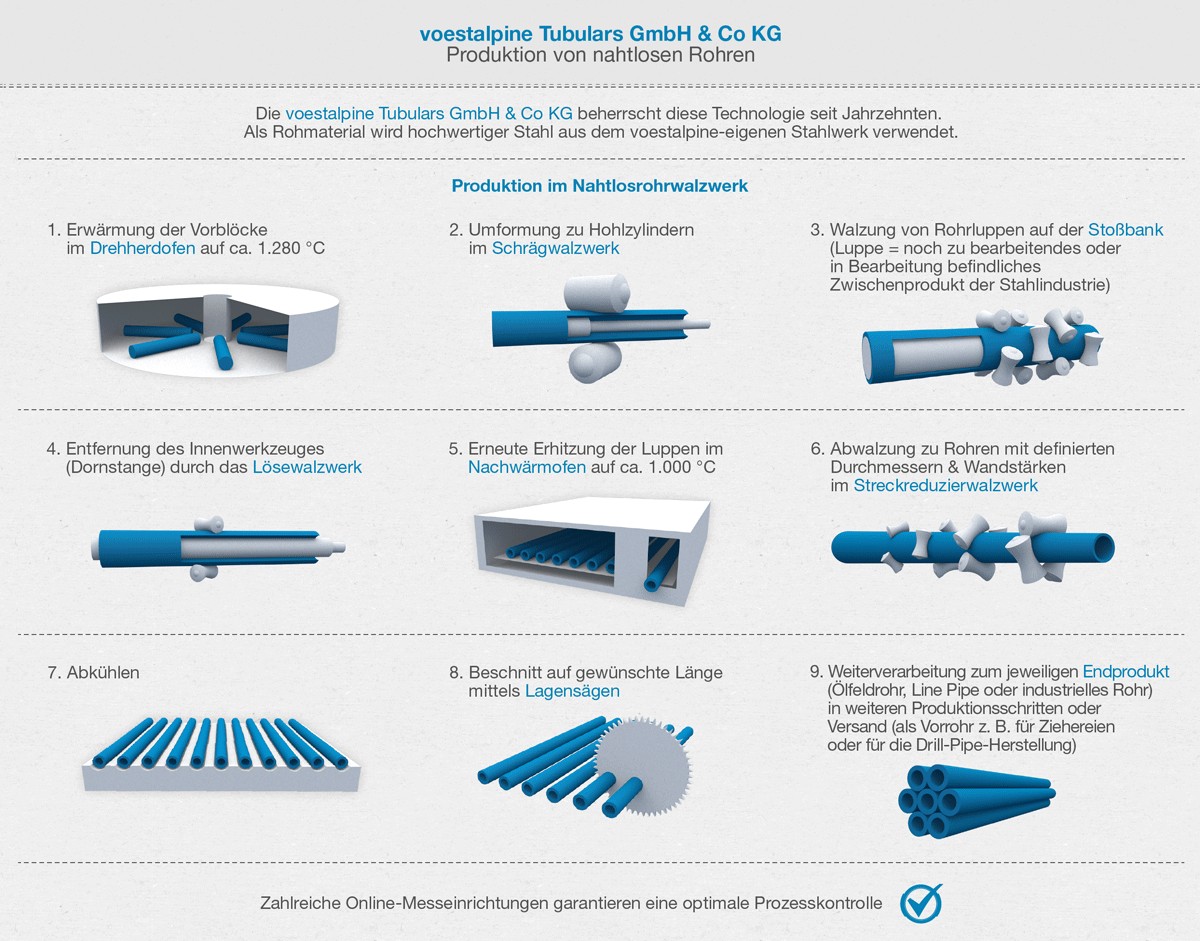 Der hochwertige Stahl, aus dem die voestalpine Tubulars GmbH & Co KG mit Sitz in Kindberg, Österreich die nahtlosen Rohre fertigt, stammt aus dem voestalpine-eigenen Stahlwerk.