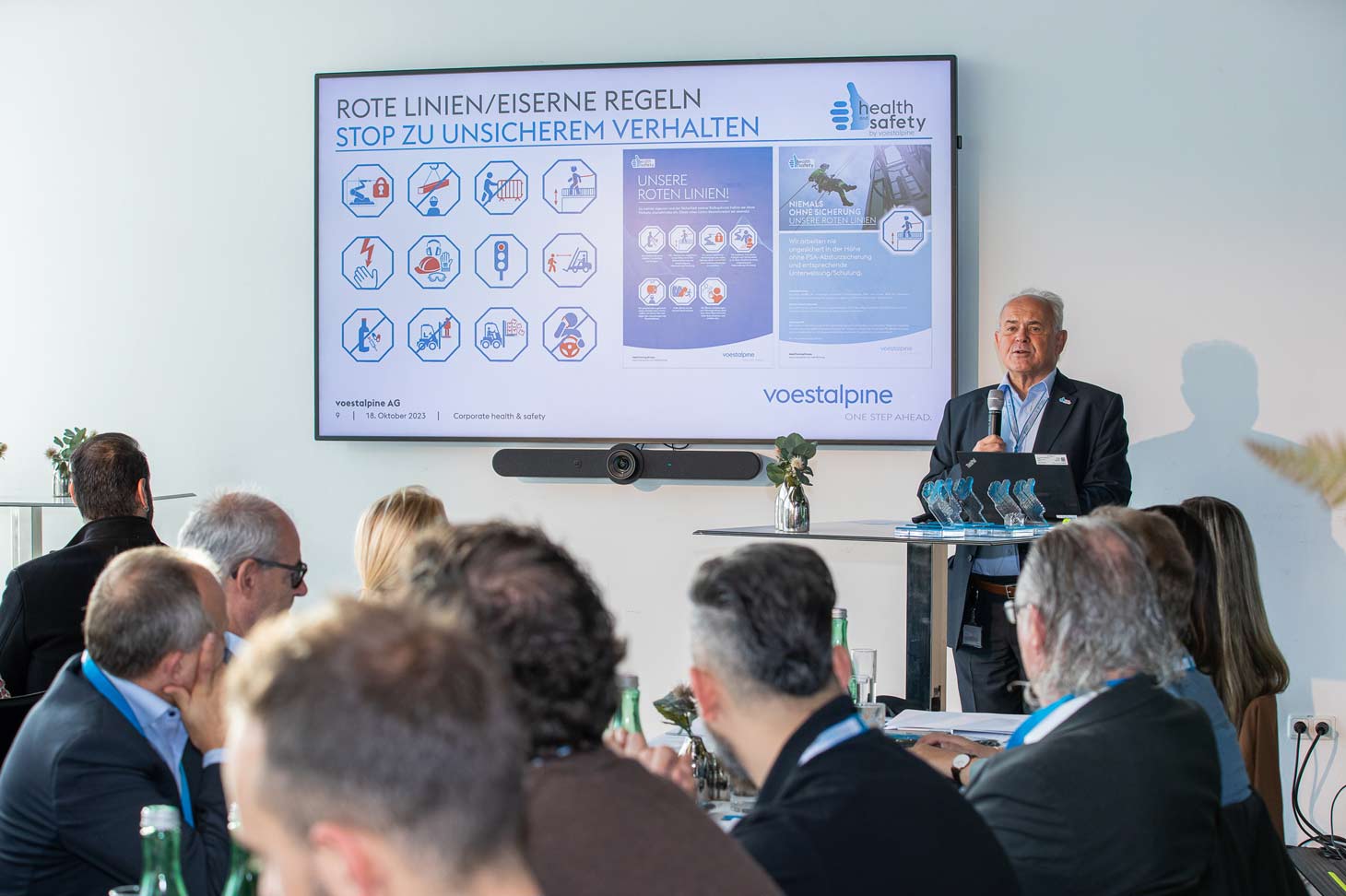 Außerdem treibt eine Reihe von konzernweiten Maßnahmen und Projekten die Arbeitssicherheit immer weiter voran. In den nächsten eineinhalb Jahren werden in unseren Unternehmen individuelle rote Linien eingeführt: absolute No Gos in der Arbeitssicherheit. Sie zeigen klar auf, welche eisernen Spielregeln nicht verhandelbar sind und welche roten Linien zur eigenen und der Sicherheit anderer keinesfalls überschritten werden dürfen. Auch der in 16 Sprachen verfügbare Safety Kalender wird wieder in einer Druckversion und digital in der Konzern-App das Thema Arbeitssicherheit regelmäßig in die Köpfe der Mitarbeiter:innen rufen. Im kürzlich eröffneten „Sicher gesund“ Trainingscenter in Linz werden zudem realitätsnah in virtueller Umgebung sicherheitsrelevante Situationen trainiert – effektiv und ohne Risiko für die Mitarbeiter:innen. Die Grundidee dafür entstand übrigens während der Health & Safety Days 2018.