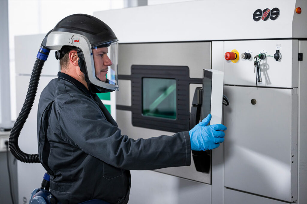 Es hat sich einiges getan im voestalpine Additive Manufacturing Center in Düsseldorf. Vier Mitarbeiter:innen begleiten hier bereits seit einigen Jahren mit modernsten Technologien und Anlagen die steigende Marktnachfrage. In der Zwischenzeit sind mehrere neue Maschinen hinzugekommen, die nicht nur weit größer als die ursprünglichen sind, sie erreichen im Fertigungsprozess auch höhere Temperaturen, um eine breitere Vielfalt an Materialien verarbeiten zu können. Zusätzlich sorgt ein Schnellwechselsystem für reduzierte Standzeiten in der Produktion. Nach und nach wurden außerdem die Parameter im Prozess weiter optimiert, um möglichst effizient produzieren zu können. Bastian und sein Team versorgen somit die Kund:innen in noch kürzerer Produktionszeit mit Teilen, die die Leistung und Langlebigkeit klassisch gefertigter Komponenten übersteigen. Als Pionier der additiven Fertigung hat Bastian, genauso wie der gesamte voestalpine-Konzern, schon früh sein Vertrauen in die vielversprechende Technologie gesetzt.