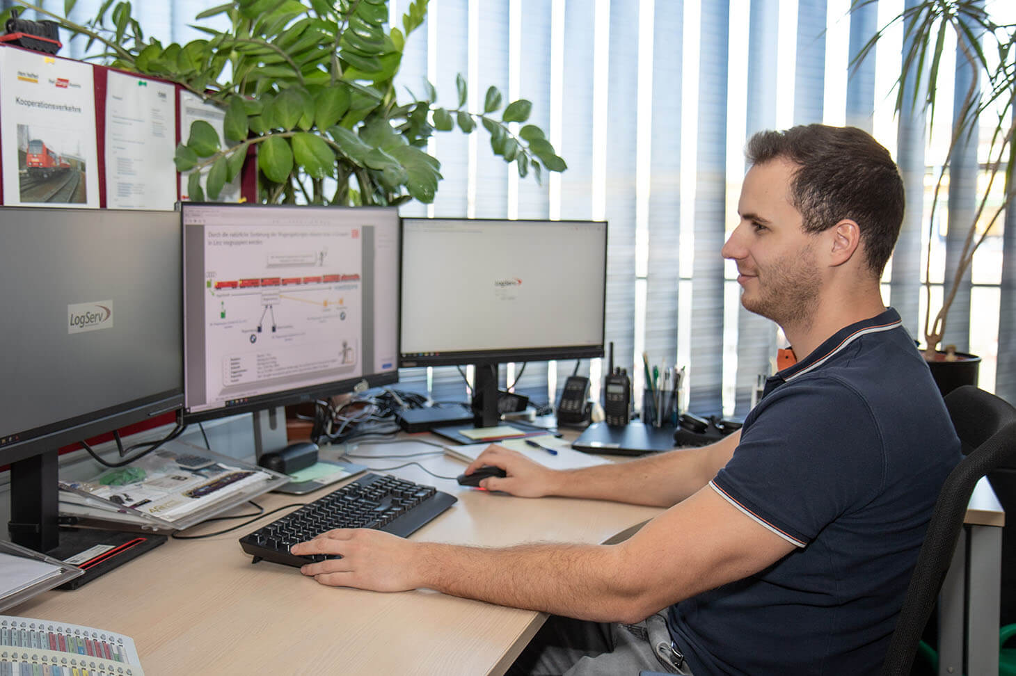 Benjamin W. hat die Handelsakademie (HAK) in Perg absolviert. Schon in jungen Jahren wusste er, was er will und hat deshalb seinen Ausbildungsschwerpunkt in der HAK aufs Logistikmanagement und die Speditionswirtschaft gelegt. Da lag es natürlich nahe, dass er seine ersten beruflichen Erfahrungen auch in diesem Bereich machen wollte. Gesagt, getan: Er stieg bei CTE (Container Terminal Enns) als Disponent im trimodalen Verkehr ein und war damit tagtäglich mit der sicheren und effizienten Disposition der Verkehrsströme auf der Wasserstraße, der Schiene und der Straße betraut. Schon damals lag der Fokus auf dem Bahnverkehr. Das sollte seine Leidenschaft für die Eisenbahn wecken. Benjamin wollte sein Wissen in Sachen Logistik vertiefen und startete nebenberuflich das Bachelorstudium „Internationales Logistikmanagement“ an der Fachhochschule Steyr, welches er heuer im Juni abschließen wird. Der Schichtbetrieb bei CTE war mit dem Studium nicht zu vereinen. Als Materialdisponent und Bestandsmanager wechselte er daher zu RWA. Es sollte bei einem kurzen Intermezzo bleiben, denn als er die Chance erhielt, bei der LogServ-Gruppe seine Leidenschaft zur Bahn zum Beruf zu machen, ergriff er sie kurzerhand. Seit November 2022 ist er Trainee im Bahnbereich und hat schon jetzt beinahe jeden Winkel des LogServ-Universums gesehen.