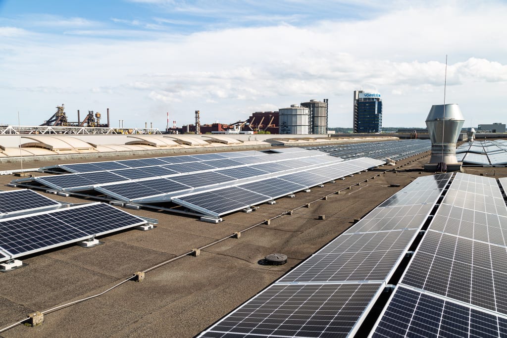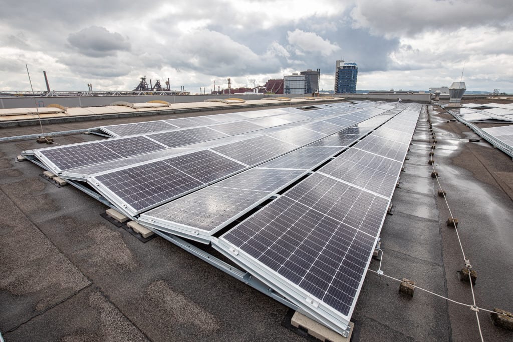 Bei den Photovoltaik-Anlagen werden leistungsstarke PV-Module mit 450 Wp je Modul und oberösterreichische Qualitätswechselrichter eingesetzt – sowie Hightech-Aufständerungsmaterial aus dem eigenen Hause. Die voestalpine liefert nämlich nicht nur Produkte zum Beispiel für den Generatoren- und Motorenbau am „grünen“ Energiesektor, sondern auch den Stahl für die hochwertige und sichere Modulbefestigung: Die speziell für Großanlagen maßgeschneiderte Unterkonstruktion wird aus voestalpine-Stahl von voestalpine Sadef nv hergestellt und kommt selbstverständlich auf den voestalpine-Dachflächen zum Einsatz. Unser Stahl ist somit Teil der Photovoltaik-Anlage, die uns in Zukunft mit grünem Strom versorgt.
