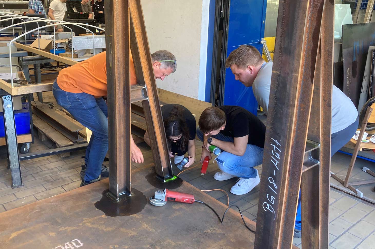 Am jährlichen Firmenpräsentationstag an der Litec Linz (vormals HTL Paul-Hahn-Straße), stellte sich die voestalpine Steel Division den angehenden Techniker:innen bestmöglich als spannende Arbeitgeberin vor. Daraufhin gewährte der verantwortliche Werkstättenleiter und Lehrer des Sohnes von Robert A. Einblicke in die Schlosser- und Blechwerkstatt. Robert arbeitet bei der Steel Division im Bereich Feuerverzinkung und ein Wort ergab das andere. Heraus kam eine Projektarbeit. Sechs neue Lagerständer für die Zwei-Tonnen-Zink-Jumbos, die für das Feuerverzinken benötigt werden, sollten angefertigt werden. Die Schüler:innen übernahmen diese Aufgabe im Rahmen des Schulbetriebs. Das benötigte Material stellte selbstverständlich die Steel Division zur Verfügung. Darüber hinaus führten unsere Techniker:innen aus dem Prüfzentrum die nötige Qualitätsprüfung gemeinsam mit den Schüler:innen durch. Die Ultraschall- und die Magnetprüfung erledigten die Schüler:innen unter Anleitung der voestalpine-Expert:innen selbst.