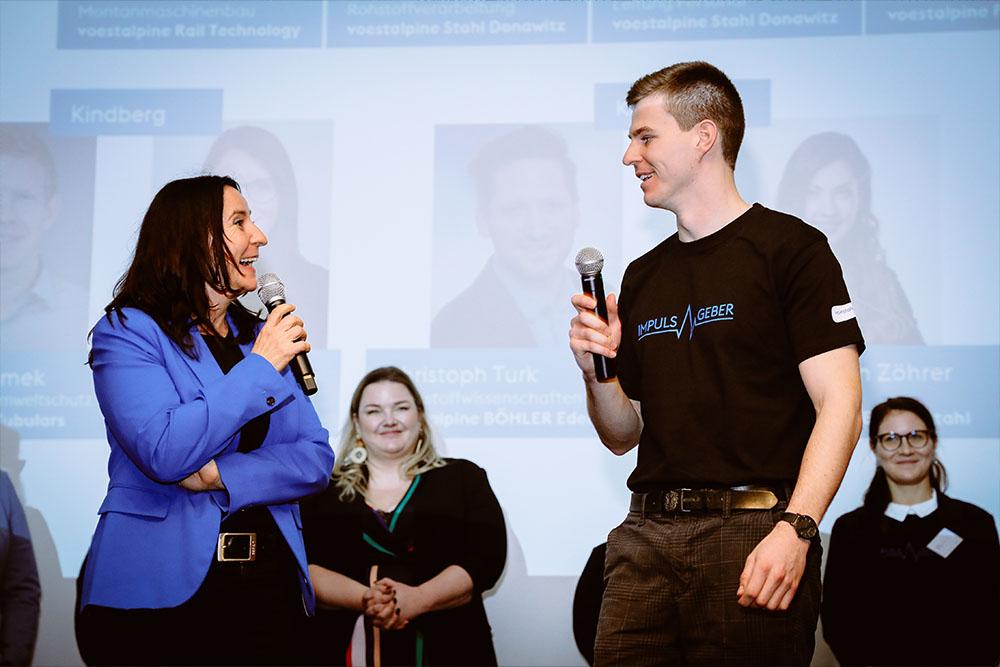 Darüber freuten sich nicht nur die rund 300 Studierenden, die der Einladung gefolgt sind – auch die voestalpine-Vertreter:innen ließen sich diese Chance nicht entgehen, um das persönliche Kennenlernen wieder forcieren zu können. Philipp Z., ÖH-Vorsitzender und Karin K., voestalpine AG, führten durch den Abend. Zu Gast waren Patricia Staniek, bekannte Profilerin aus Fernsehen und Medien & Aleksandar Stanojevic, Head of Innovation bei voestalpine Böhler Aerospace. Die Veranstaltungsreihe #voestalpinetalks ist eines von vielen Beispielen für die intensive Kooperation des international tätigen voestalpine-Konzerns mit der Montanuniversität Leoben.