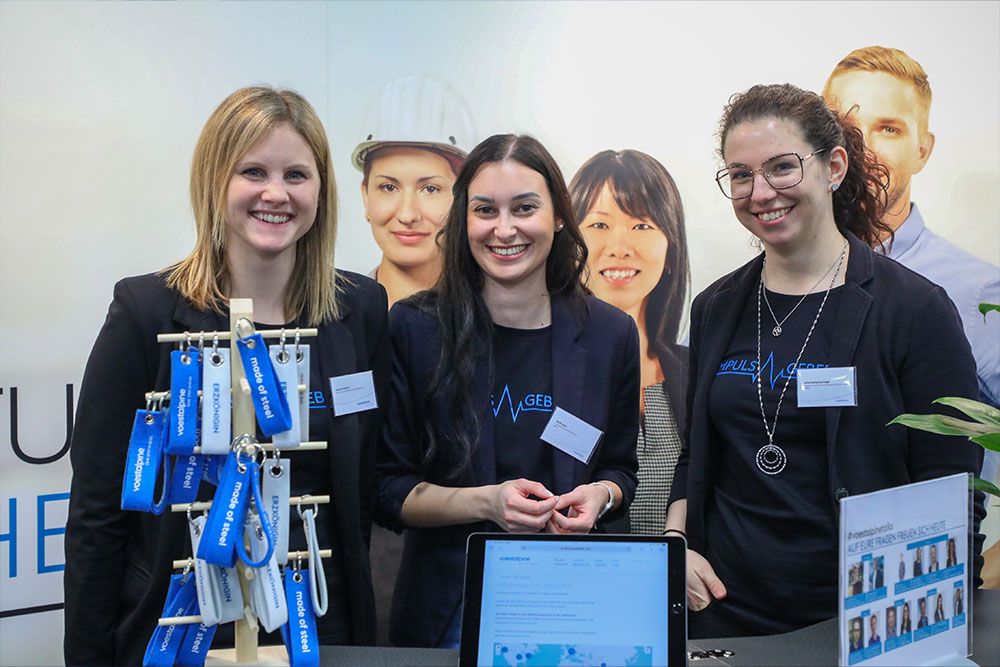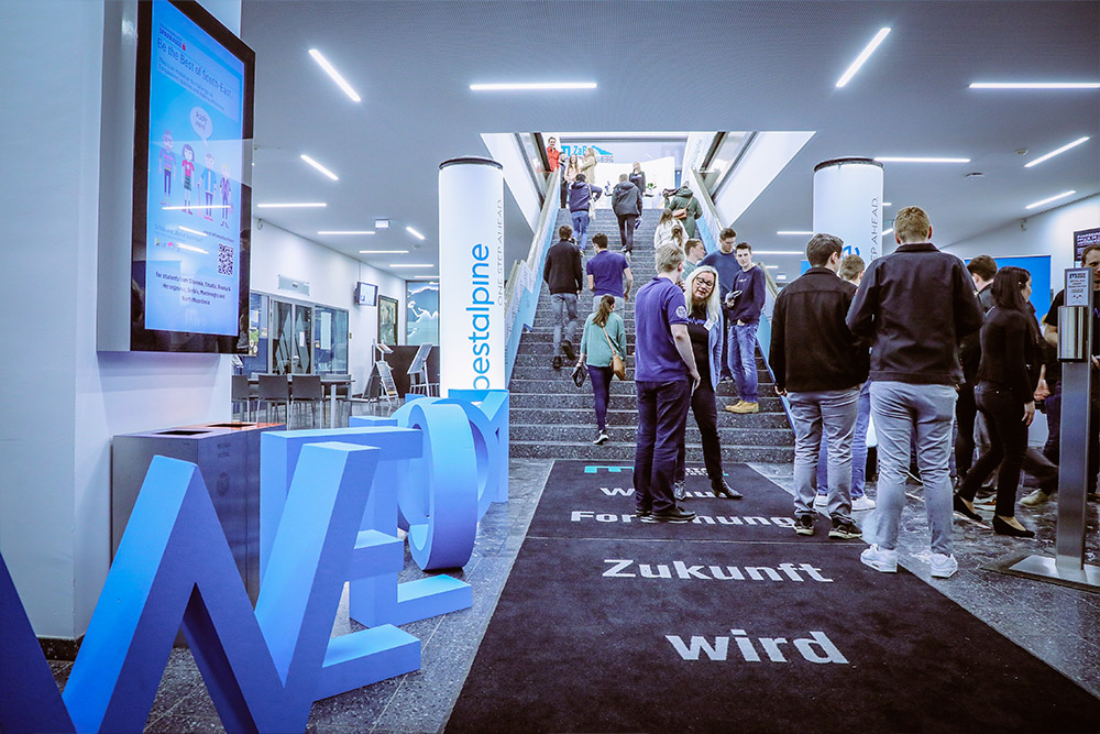voestalpine-Mitarbeiter:innen aus HR und Technik informierten am Messestand über die vielfältigen Karrieremöglichkeiten innerhalb des voestalpine-Konzerns. Aktuell sind mehr als 500 Studienabgänger:innen der Montanuniversität im voestalpine-Konzern beschäftigt. Die #voestalpinetalks ist Ausdruck der langjährigen Partnerschaft zwischen der voestalpine und der heimischen Top-Universität: So investierte der Konzern bereits mehrere Millionen Euro in die direkte Forschungszusammenarbeit, erteilt zahlreiche Forschungsaufträge, bezieht Laborleistungen und unterstützt Professuren, Exkursionen sowie eine Reihe von Projekten zur Förderung des Technik-Interesses bei jungen Menschen.