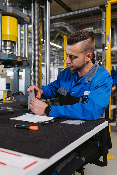 In testing technology and analytics, sample sections from various production areas, but also for research and development, are subjected to a wide range of tests – bending, stretching and much more. This ensures that the various qualities meet the standards and are safe to use. As a trained mechanic, Rainer is now a materials tester and ensures these qualities.