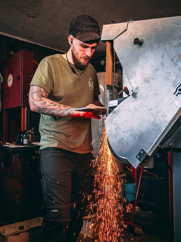 Thomas is also a blacksmith in his private life and started his own cutlery business in 2021. He also brings his professional knowledge of materials and design expertise to the table. He has set up a forge in his grandfather’s former workshop, where he now produces high-performance chef’s knives, folding knives, hunting knives and fine traditional knives. He does not limit himself and forges whatever he enjoys and has blades for.