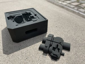 In 3D sand printing, innovative ideas are the result of thinking “Outside the Box” and implemented “Inside the (Job)Box”. A 3D printer uses CAD data to directly produce sand molds into which liquid steel is poured. The sand molds are created by the repeated application of 300-micrometer-thick layers of chemically bonded silica sand. The sand mold is created grain by grain inside the printer—the job box. By individually bonding the grains, complex molds can be produced that were not possible with traditional manufacturing methods. Thanks to this wide range of possibilities, there are (almost) no design limitations for castings. Even highly complex products can be easily realized. Large molds can be produced by printing and combining several sections.