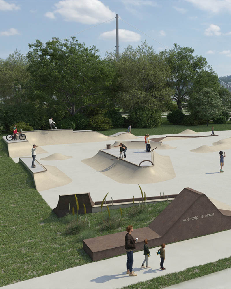 Clearly visible, but not immediately obvious, that our products play a role in this leisure facility: The skate park in Urfahr – one of the largest in Austria – is now being comprehensively revitalised in cooperation with voestalpine and raised to a new level. More than 200 m² of high-quality steel sheets in our new CO2-reduced greentec steel edition are being used.
