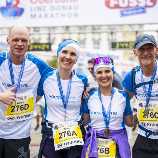 Since March 1, our employees have been collecting digital cares for the “voestalpine cares run” 2025 and have already raised more than € 437,000. An important event for collecting cares this year was once again the Linz Danube Marathon, where we were represented in large numbers again this year. Through the raffle for relay starting places alone, 21 voestalpine relay teams took part. In addition, around 300 of our employees picked up our voestalpine goodie bag for participating runners.