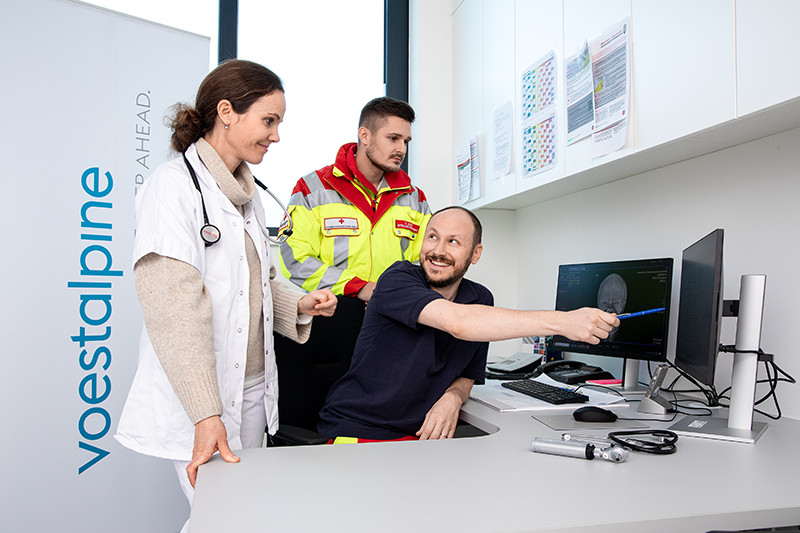 The facility in Donawitz has been an outpatient centre for occupational diagnostics for around two years. The 750 square metres of medical facilities available there make it possible to obtain findings quickly, e.g. X-ray, ECG, laboratory diagnostics, ultrasound and much more. Free vaccinations in Austria, such as the influenza vaccination, are also offered as part of the health promotion programme at the Donawitz site. Other Styrian companies also make use of the wide range of services offered by occupational medicine in Donawitz for their employees. At smaller sites, we work together with selected external partners. Or at the Hamm site (Germany), where a physiotherapist, who also acts as a company paramedic in emergencies, has not only been treating the physical complaints of his colleagues since 2020, but is also available as a health expert for all health issues. He also works closely with a medical assistant, who is on site once a week, and the company doctor.
