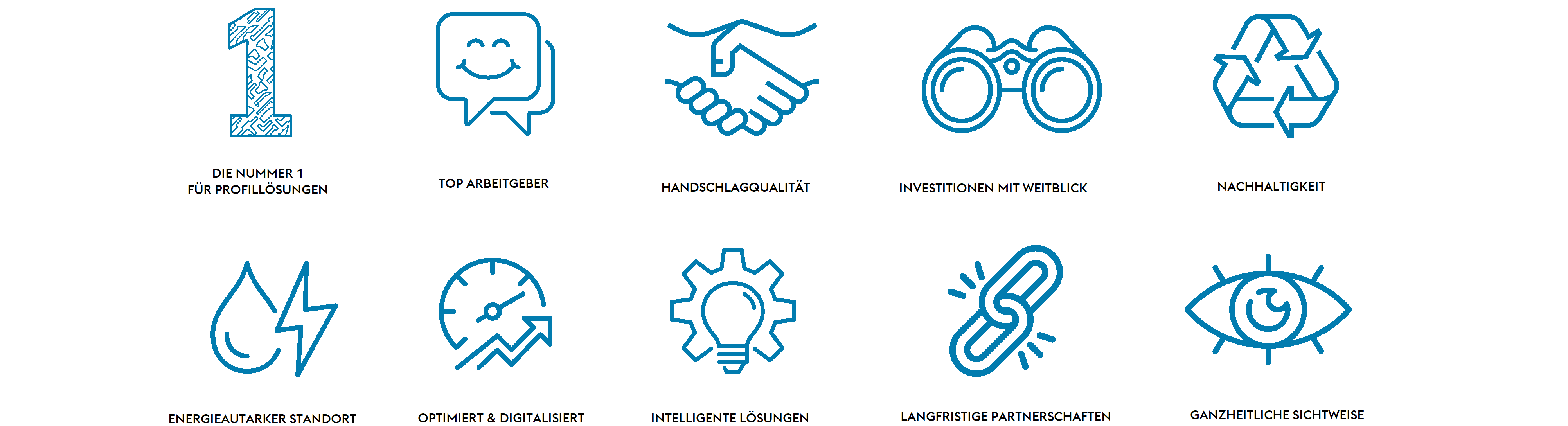 Die Konfigurationsvarianten bestehend aus Werkstoffen, Erschmelzungsarten, Ausführungen, Wärmebehandlungen, Oberflächen und mehr ergeben für jeden Kunden ein individuelles und einzigartiges Spezialprofil.