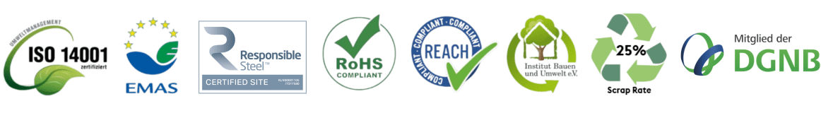 Die voestalpine Stahl GmbH in Linz, der Produktionsstandort von colofer®, verfügt über ein umfassendes Umweltmanagementsystem nach ISO 14001 sowie eine Validierung nach EMAS III (EG 1221/2009) und dem Responsible Steel Zertifikat. Außerdem erfüllt colofer® die gesetzlichen Anforderungen an Schadstoffsicherheit nach RoHS und REACH.