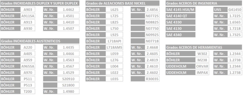 Ofrecemos una de las carteras de productos más amplias de la industria, que abarca aceros de baja aleación , aceros inoxidables , aceros dúplex y superdúplex , aleaciones a base de níquel y polvos de fabricación aditiva .