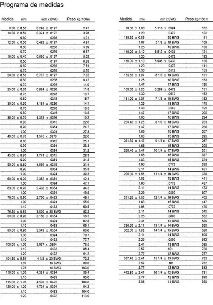 Espesores 1,2 a 3,05 mm