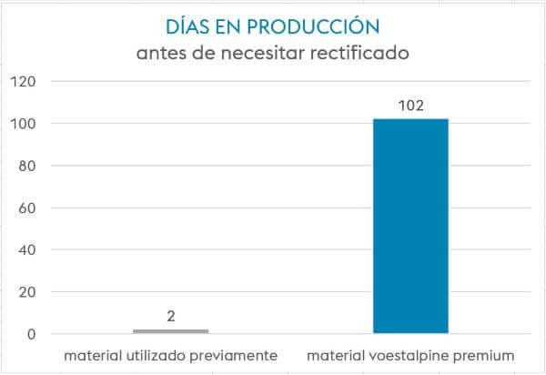 Con el uso de la Tecnología de Molienda de Carne de voestalpine, nuestros clientes han mantenido sus máquinas picadoras en funcionamiento durante 102 días antes de necesitar reafilar las piezas. Esto representa una mejora enorme en comparación a tener que enviar el equipo estándar de la industria para ser reafilado cada 2 días anteriormente.