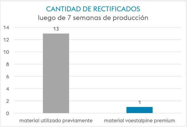 Utilizando la Tecnología de Molienda de Carne de voestalpine en la producción de carne picada, las piezas estuvieron en funcionamiento durante 7 semanas antes de necesitar ser reafiladas. Con la tecnología estándar, tuvieron que detenerse varias veces en promedio para reafilar en el mismo período.