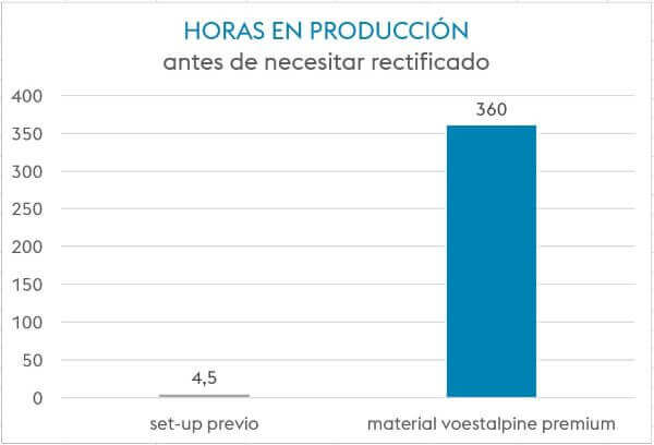 En la producción de embutidos, los clientes que utilizan la Tecnología de Molienda de Carne de voestalpine mantuvieron sus máquinas de relleno en funcionamiento durante 360 horas antes de necesitar reafilar las piezas. Con la tecnología estándar, tenían que reafilar las piezas después de solo 6.5 horas de producción.