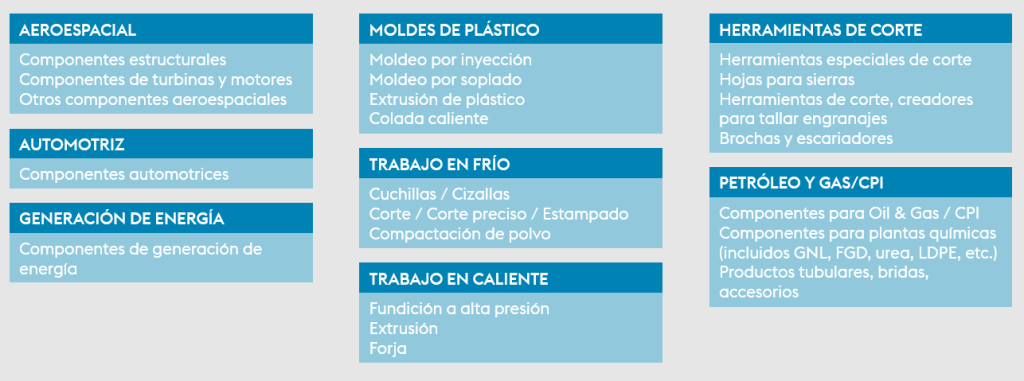 Las chapas de voestalpine Böhler Bleche se utilizan principalmente en las siguientes aplicaciones