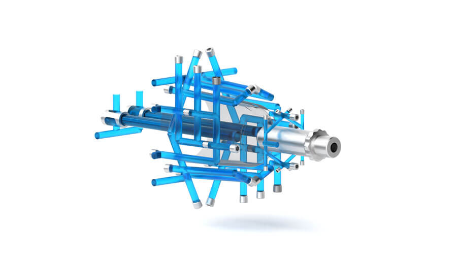 A comparison between conventional and near-contour temperature control highlights the advantages of conformal cooling. With conformal cooling, the cooling channels follow the shape of the part more precisely, allowing the diamond structures to be accurately replicated during the cooling process. This is especially beneficial in the critical core area, where heat dissipation plays a significant role throughout the cycle, enabling much more efficient cooling.