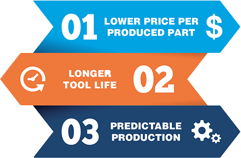 Door de unieke combinatie van een extreem goede slijtvastheid en weerstand tegen afschilfering en een verbeterde verspaanbaarheid, neemt het productietempo toe en verminderen de productiekosten.