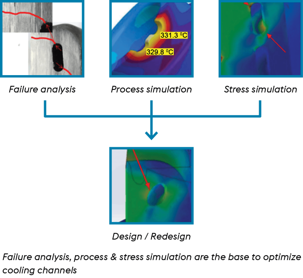 Our data driven approach to cooling channel design analyzes processing parameters and mechanical loads to develop detailed computer models and process simulations (digital twins) of each customers HPDC application. This method of optimizing thermal management is essential to ensure the right balance between efficient cooling and maximizing the mechanical performance of the tool.