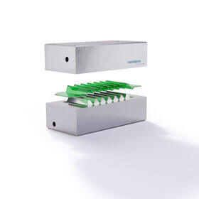 La fabricación aditiva es una de las metodologías de producción más ventajosas para componentes con geometrías complejas y funciones integradas, al superar los límites de la producción convencional. Incluso en las estructuras más complejas, como canales de refrigeración curvados, pueden imprimirse con aceros premium para AM al añadir capa sobre capa de polvo metálico.