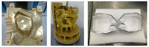 Einer unserer Kunden aus der Automobilindustrie wandte sich kürzlich an uns, um uns bei der Verbesserung seines Werkzeugs zur Herstellung eines Fahrzeugreflektors zu helfen. Mit Kratzern auf den Formteilen hatte er eine sehr ungünstige Ausfallquote von 70 %. Wir haben eine geeignete Beschichtungslösung (MOLDADUR-P + TiN-Ultrafine) für die Kern- und Kavitäteneinsätze entwickelt. Das Ergebnis: Die Ausschussrate wurde von 70 % auf 2 % gesenkt, und die Standzeit des Werkzeugs wurde auf über 50.000 Schüsse ohne Kratzer auf dem Kunststoffteil verlängert.