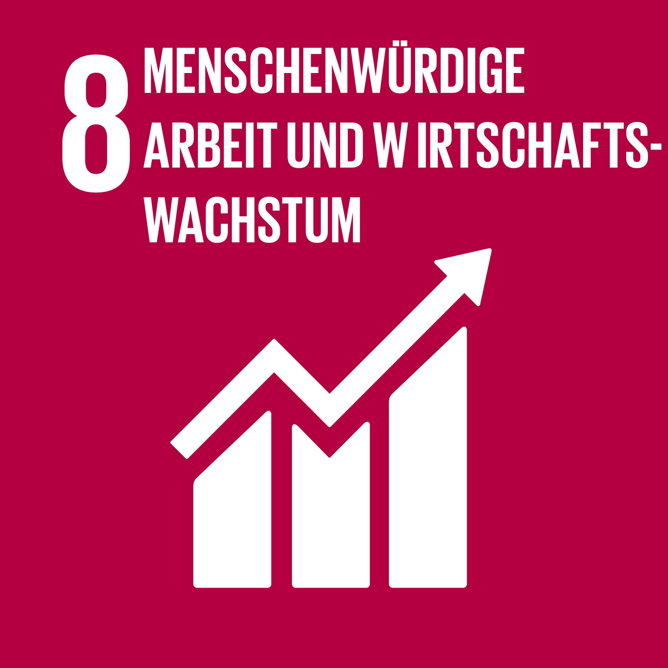 Übergeordnetes Ziel dieses SDGs ist es, ein dauerhaftes inklusives und nachhaltiges Wirtschaftswachstum, produktive Vollbeschäftigung und menschenwürdige Arbeit für alle zu fördern, einschließlich Gesundheit und Sicherheit sowie Gleichstellung der Geschlechter. Für uns besonders wesentlich sind dabei die Teilziele, die sich mit dem Erreichen eines höheren Niveaus wirtschaftlicher Produktivität und produktiver Vollbeschäftigung sowie der schrittweisen Verbesserung der Wirtschaftsleistung und Wohlstand bei Entkopplung vom Ressourcenverbrauch. Außerdem steht der Schutz der Arbeitnehmer:innenrechte und die Gewährleistung eines sicheren Arbeitsumfelds für alle Arbeitnehmer:innen auf unserer Prioritätenliste. Zusätzlich ist es uns wichtig, zur Förderung einer entwicklungsorientierten Politik beizutragen, die produktive Tätigkeiten, die Schaffung von menschenwürdigen Arbeitsplätzen, Unternehmertum, Kreativität und Innovation unterstützt.