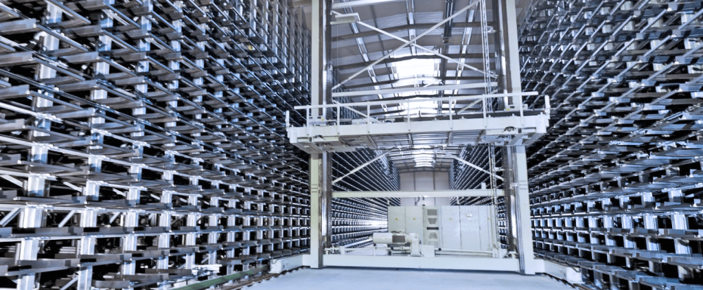 Der größte Teil unseres Material lagert in einem vollautomatischen Hochregallager das mit 2 Regalbediengeräten 2816 Kassettenstellplätzen anfährt und 6 Ein- bzw. Auslagerstationen bedient. In unserer Logistik können Werkstücke bis zu 50 t gehandhabt werden.