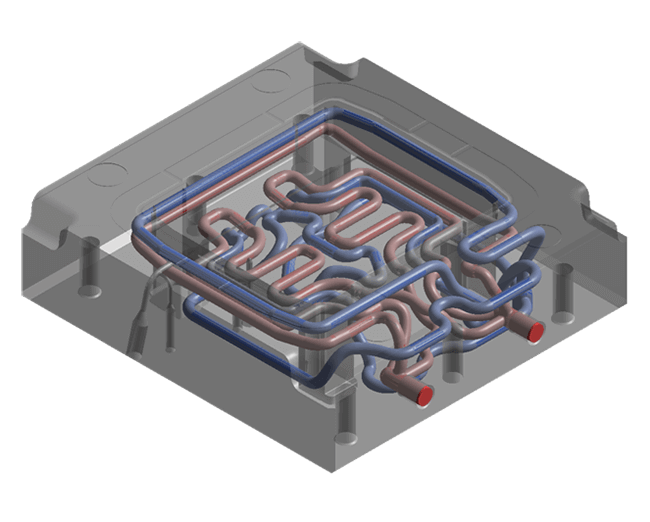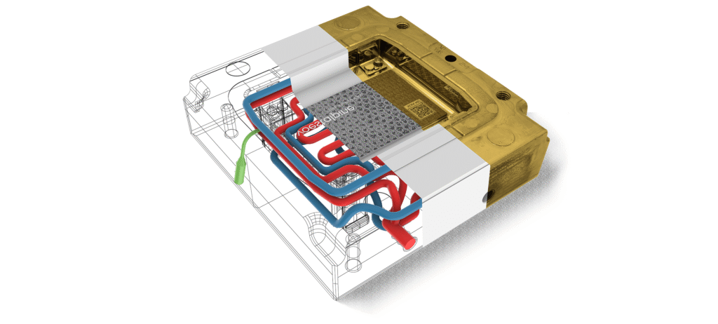 Im Allgemeinen können konturnahe Kühlkanalkonzepte den komplexen Konturen der Form folgen und gewährleisten eine gleichmäßige Wärmeextraktion im Vergleich zu konventionell gebohrten Kühlkanälen. Diese Konsistenz garantiert gleichmäßige Temperaturen über die Werkzeugoberfläche hinweg, beseitigt Hot Spots und minimiert thermische Spannungen. Konturnahe Kühlkanäle haben das Potenzial, die Kühlzeiten signifikant zu reduzieren und somit die Effizienz der Produktion zu steigern. Zusätzlich ermöglicht das konturnahe Design eine überlegene Bauteilqualität, indem Verzug und Defekte minimiert werden.