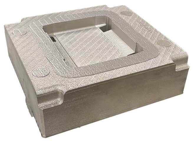 Die mechanische Bearbeitung des konturnah gefertigten Einsatzes erfolgte durch den Kooperationspartner FBB Formenbau Buchen GmbH. Dieser bildet die Basis für alle nachgelagerten Bearbeitungsschritte.