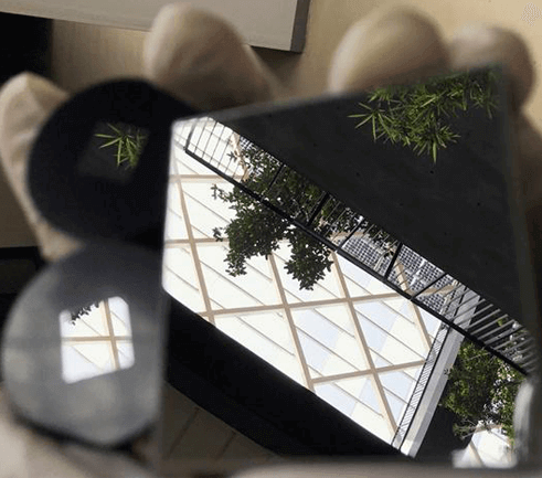 Durch unsere Femto-Lasertechnik können äußerst präzise feine Strukturen in Werkzeugeinsätze eingearbeitet werden, wie zum Beispiel Hologramm-Effekte, die den Schriftzug “voestalpine – ONE STEP AHEAD.” hinterlegen. Diese Strukturen nutzen das Phänomen der Diffraktion, bei dem Lichtwellen, die auf die Struktur treffen, sich verbreiten, anstatt nur in eine Richtung reflektiert zu werden. Abhängig von der Position des Betrachters und der Lichtquelle wird das Licht in verschiedenen Spektralfarben gebrochen. Dieser Effekt kann durch den Laser-Prozess gesteuert werden.