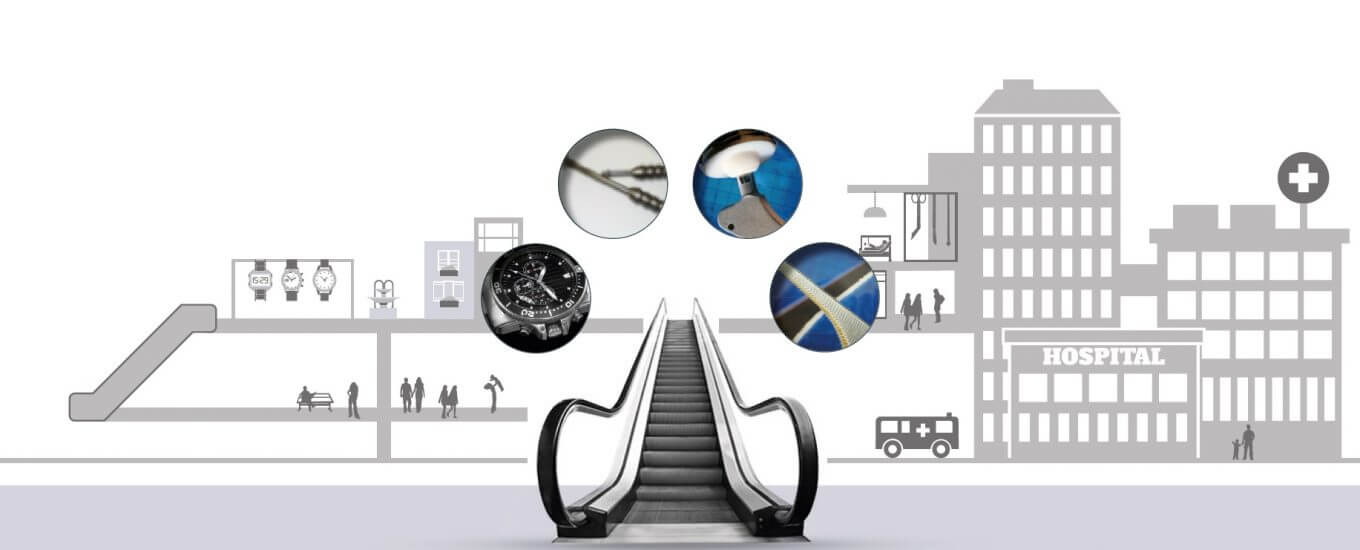 | Ingeniería | Industria médica, ingeniería mecánica, construcción de maquinaria, industria de la construcción, industria electrónica, packaging, sistemas ferroviarios, bienes de consumo, elementos de sujeción, tornillos, tuercas, laminación, ejes, cuchillas de mano |