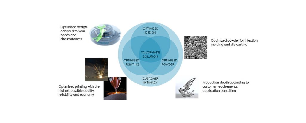 Producția aditivă nu este doar un nou mod de a produce. Este un nou mod de gândire. Nu există limite atunci când un produs final este proiectat și executat digital – strat cu strat. După proiectarea digitală într-un model CAD 3D, chiar și cele mai complexe structuri pot fi “tipărite” strat cu strat, folosind pulbere metalică.