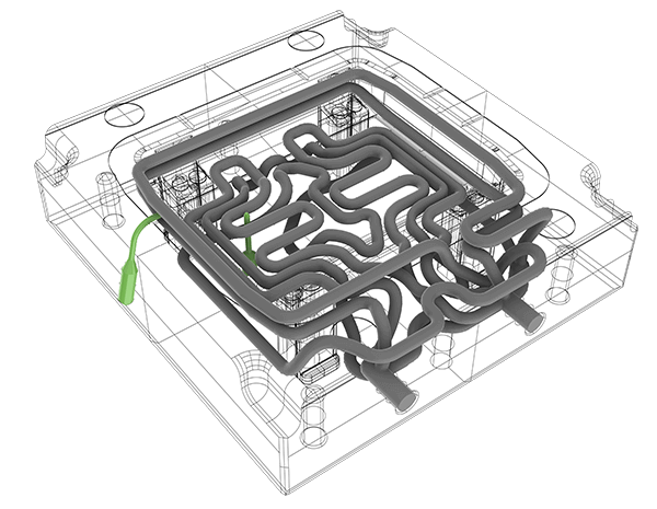 Integrované konformné chladiace kanály kopírujú zložité obrysy stien dutiny, čím poskytujú oveľa rovnomernejší odvod tepla v porovnaní s konvenčne vŕtanými chladiacimi kanálmi. Homogénne rozloženie teploty v dutine eliminuje horúce miesta, minimalizuje tepelné napätie, a tým umožňuje dosiahnuť vynikajúcu kvalitu dielu (eliminácia prietokových línií) a skrátenie času cyklu.