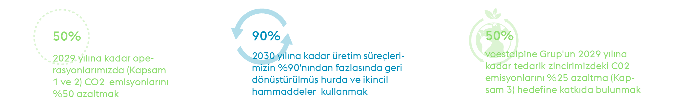 Amacımız, müşterilerimizin karbon nötrlüğüne doğru dönüşümlerini desteklemektir: ürünlerimizin ve hizmetlerimizin karbon ayak izlerini şeffaf hale getirerek, malzeme döngülerini kapatarak ve dolayısıyla üretilen parçaların karbon ayak izinin azaltılması konusunda ortaklaşa iş birliği yaparak. Müşteri çözümlerimiz hakkında daha fazla bilgi edinmek için buraya tıklayın: