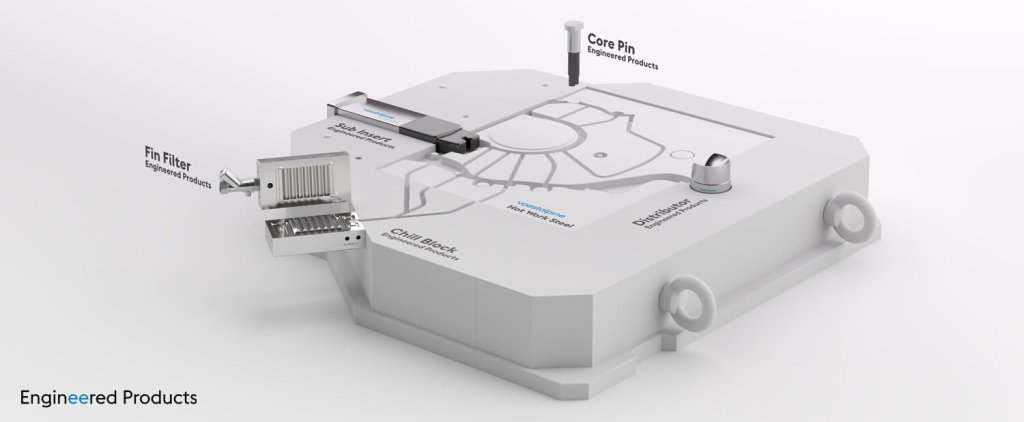 Our Engineered Products are produced from premium hot work steel or powder from BÖHLER/Uddeholm. These ready-to-use products include all necessary services such as state-of-the-art machining, voestalpine heat treatment, ABP surface treatment, and eifeler PVD coating. Our full solution to your die casting needs also includes additive manufacturing technology (AM), which can bring additional improvements through the creation of tailored conformal cooling and sensor channels.