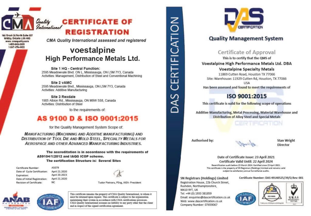 With AS 9100 & ISO 9001:2015 combined certification, voestalpine Additive Manufacturing Center provides AM services and expertise directly to aviation and aerospace companies.  voestalpine’s global footprint make us the ideal partner for your aerospace endeavors, whether for prototyping or serial production, wherever you need it.