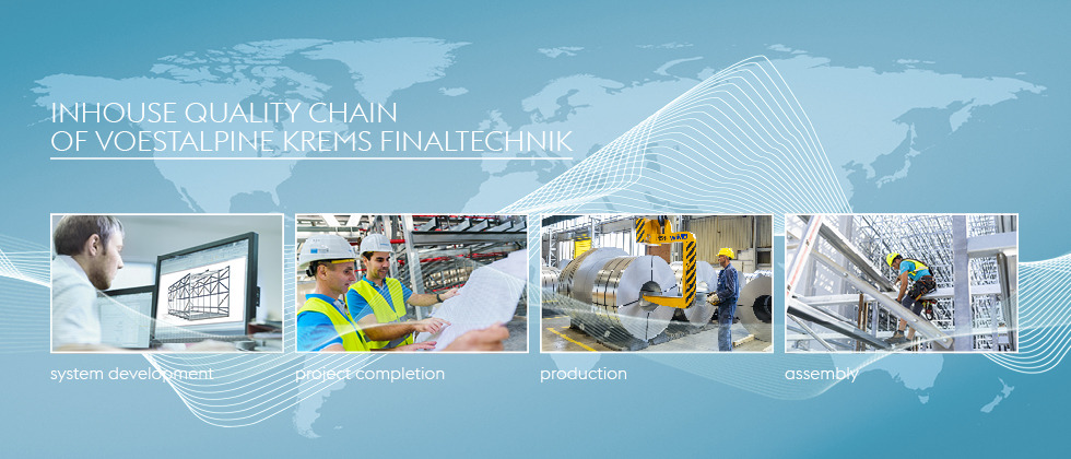 We guarantee the complete quality chain inhouse – from the development of the system, to project completion and production of the products, all the way to the assembly - with voestalpine in charge. You receive everything from a single source and a single company. The IQ-Chain® of voestalpine Krems Finaltechnik offers you: