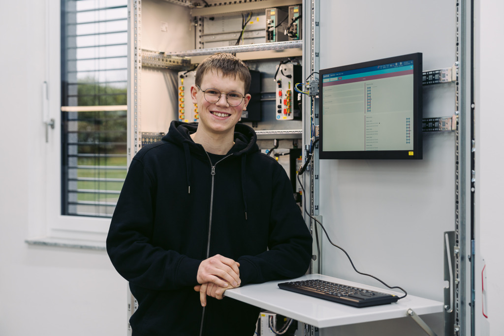 Jan-Martin hat bei einem Schulpraktikum an unserem Standort in Sainerholz erfahren, wie gut Elektrik und Metalltechnik bei der Mechatronikausbildung zusammenwirken. Derzeit absolviert er bereits das zweite Ausbildungsjahr bei uns.