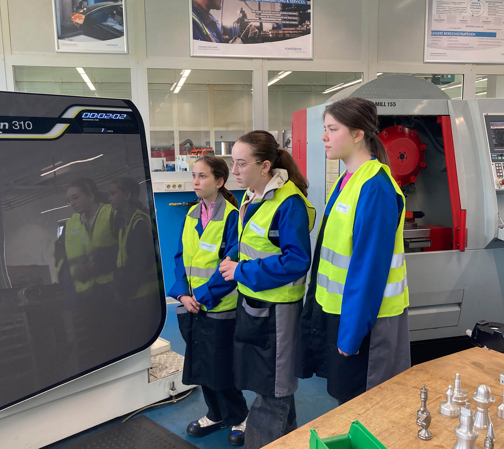 Auch an unseren steirischen Standorten voestalpine Turnout Technology Zeltweg, voestalpine Stahl Donawitz GmbH, voestalpine Tubulars GmbH und voestalpine Wire Austria GmbH hatten die Mädls die Möglichkeit einen Blick in unsere technischen Lehrberufe zu werfen. Neben dem gegenseitigen Kennenlernen und Sicherheitsunterweisungen, bekamen die Mädchen viele Lehrausbildungsinsights und hatten einen spannenden Tag beim Schnuppern in unterschiedlichen Bereichen. Dabei konnten sie selbst kleine Aufgaben ausprobieren, Maschinen kennenlernen und mit unseren Lehrlingen ins Gespräch kommen.