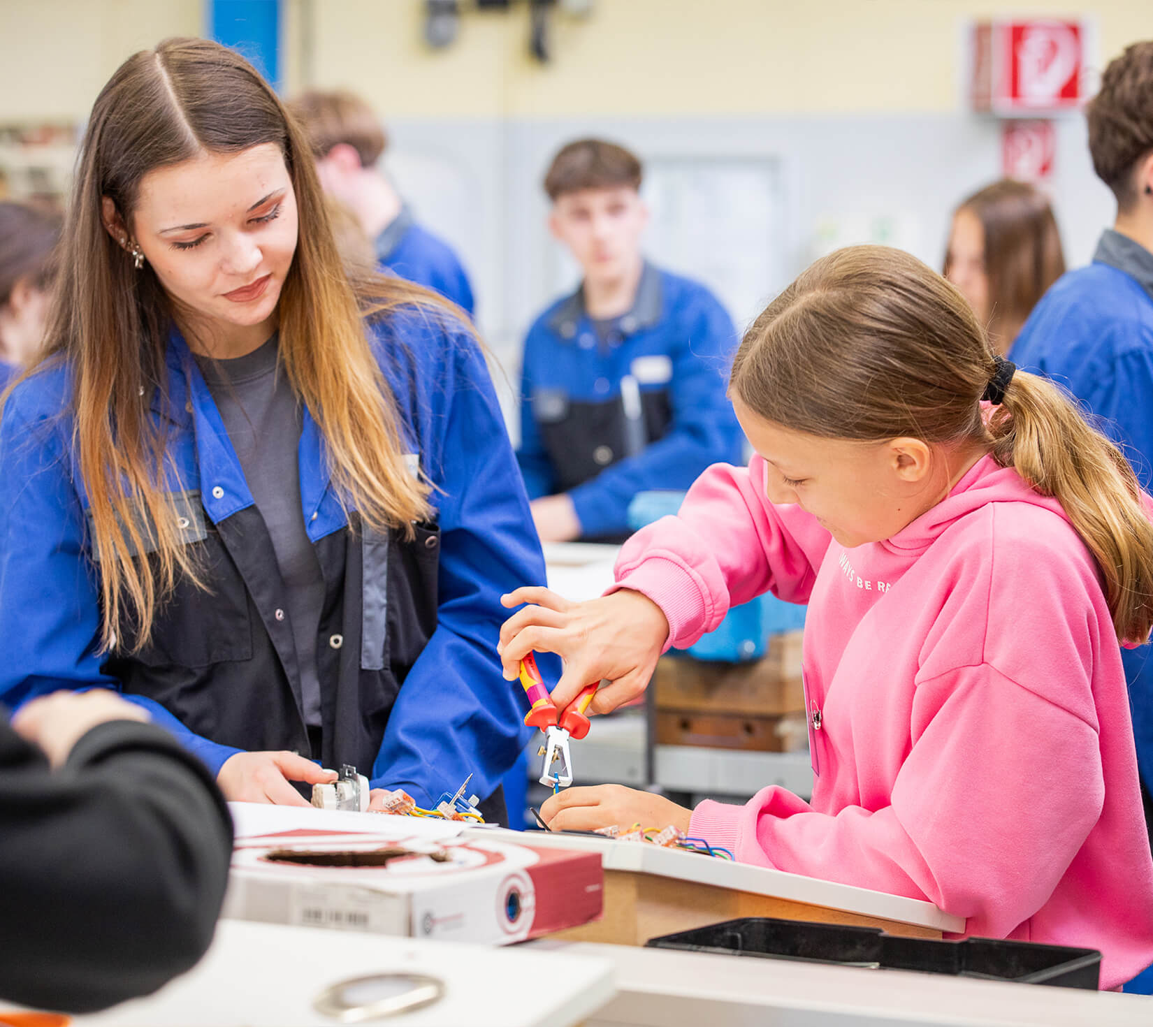 Uns ist es wichtig, allen Jugendlichen die Möglichkeit zu geben, ihre Zukunft zu gestalten. Daher möchten wir auch Mädchen ermutigen technische Berufsfelder zu entdecken. Junge Frauen haben Interesse an MINT-Berufen (Mathematik, Informatik, Naturwissenschaft und Technik) und das freut uns, denn Vielfalt bereichert unsere Teams. In den letzten zehn Jahren hat sich der Anteil an Frauen in technischen Lehrberufen bei uns mehr als verdoppelt und liegt aktuell bei 22 %. Generell beträgt die Frauenquote bei den Jungfachkräften 26 %. Um Mädchen weiterhin für technische Berufe zu begeistern, luden unsere Standorte zum Girls‘ Day ein und geben spannende Einblicke in den Tag.