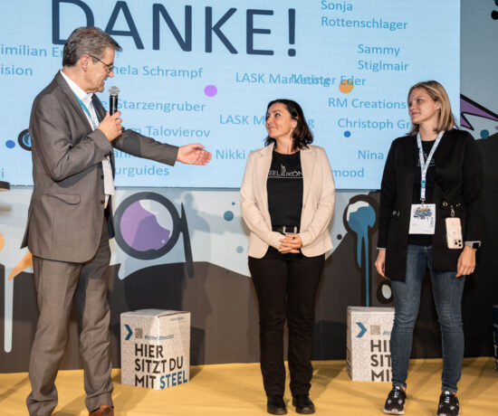 Passend zur Location war auch das Motto des Tags „Teamspirit“ und auch sonst gibt es einiges, das den LASK und uns verbindet: die Fassade und das Dach der Arena sind mit 19.000 m² Stahl aus der voestalpine greentec steel Edition ausgestattet. Und eine Kooperation des LASK mit der Steel Division ermöglicht den Teilnehmer:innen exklusive Stadiontouren und spannende Meet & Greets mit den Fußballer:innen.