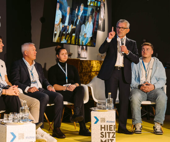 Gemeinsam mit den Vorständen und dem Betriebsratsvorsitzenden sind auch ausgewählte Lehrlinge und Auszubildende der verschiedenen Standorte auf der Bühne und berichten interessante Geschichten aus ihrem Alltag als Lehrlinge. Dadurch ergaben sich spannende Gesprächs-Duos, die an jeweils völlig unterschiedlichen Punkten ihrer Berufslaufbahn stehen und dennoch einige Gemeinsamkeiten haben, wie die Moderatorin Karina Toth aufzeigt. Unser CEO Herbert Eibensteiner unterstreicht nochmal den hohen Stellenwert, den die Lehre und Ausbildung bei der voestalpine hat und auch Franz Kainersdorfer, Vorstand der Metal Engineering Division, berichtet von dem besonderen Teamspirit bei uns. Unser CFO Gerald Mayer gibt den Jugendlichen auch den Tipp im Laufe ihres Berufslebens verschiedene Bereiche und Branchen kennenzulernen. Und so zeigt sich, dass nicht nur die Lehrlinge und Auszubildenden gute Zusammenarbeit leben, sondern auch die Vorstände ein starkes Team sind.