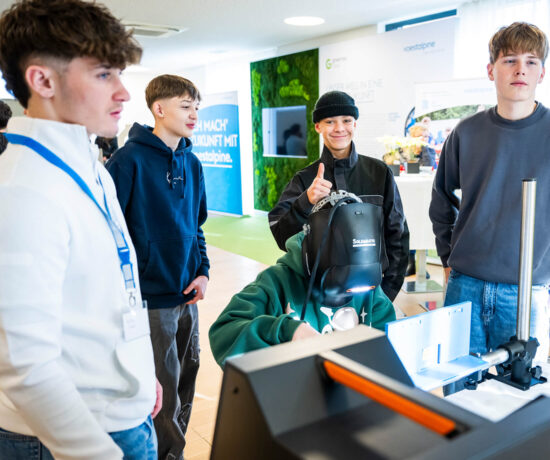 Um den gelungenen Tag noch lange in Erinnerung zu behalten, hatten die Schüler:innen durch eine Fotobox die Möglichkeit gemeinsam mit Freund:innen in die Arbeitsbekleidungen von Schweißer:innen, Umformtechniker:innen und Chemie-Laborant:innen zu schlüpfen und Fotos zu machen. Die entstandenen Bilder konnten sich die Schüler:innen anschließend direkt auf T-Shirts drucken lassen und als Erinnerung mitnehmen. Abgerundet wurden diese besonderen Tage jeweils durch ein Schätzspiel mit Schrauben und einer tollen Siegerehrung mit leckerem Popcorn, tollen Preisen und einer Ansprache der Unternehmensvertreter:innen aus dem Management.