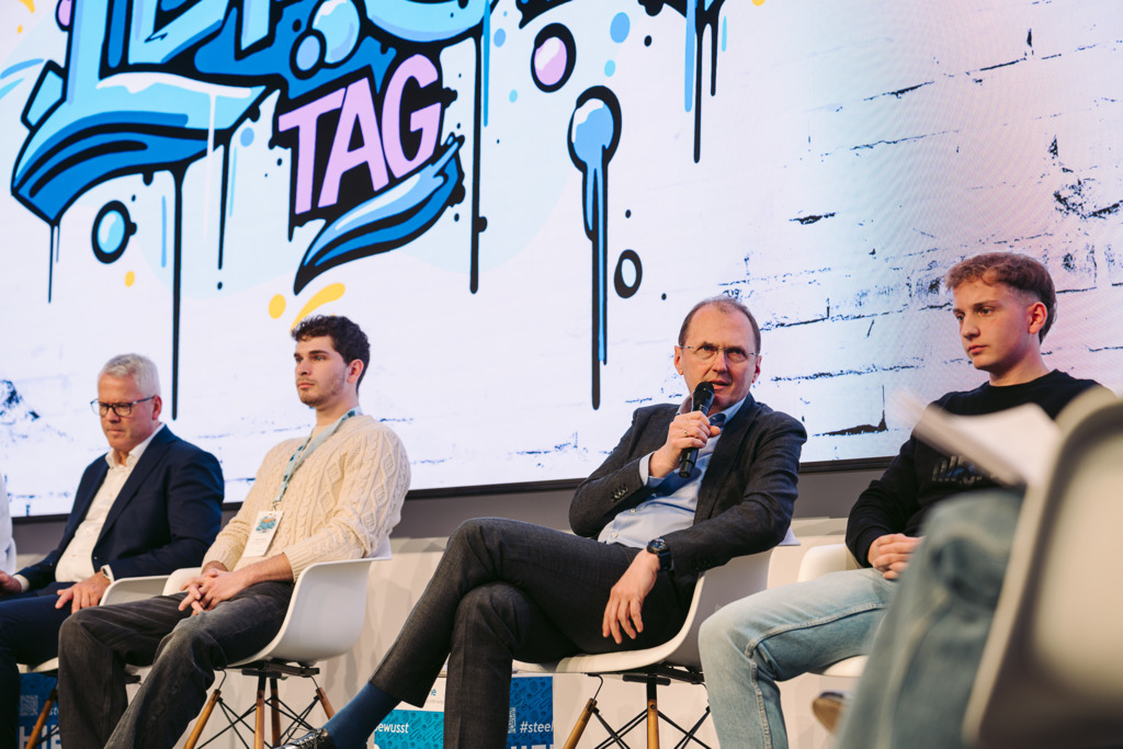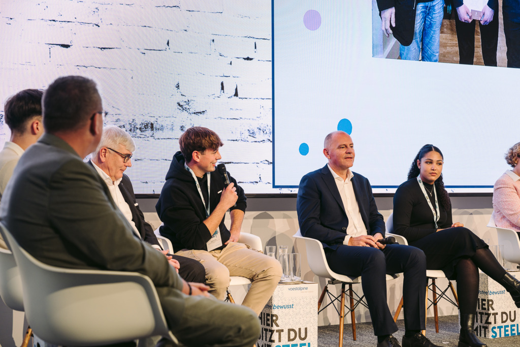Nach einem gelungenen Start begrüßte CEO Herbert Eibensteiner die Jugendlichen herzlich. Es folgte eine Gesprächsrunde mit dem gesamten Vorstand der voestalpine AG, dem Konzern-Betriebsratsvorsitzenden sowie Lehrlingen aus allen Divisionen.